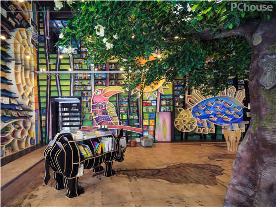 慢慢走向深处,我们会突然被绚丽的一角所吸引,那里好像不属于这个殿堂般深沉和浓郁的书海,更像是从天而落下的彩虹般多彩与活泼。它,就是钟书阁二期专为小读者打造的绚丽童书馆。里面由一颗代表生命的大树为中心,印在航海地图上的地图指引我们发现这里是一个具有蓬勃生机力的新世界!