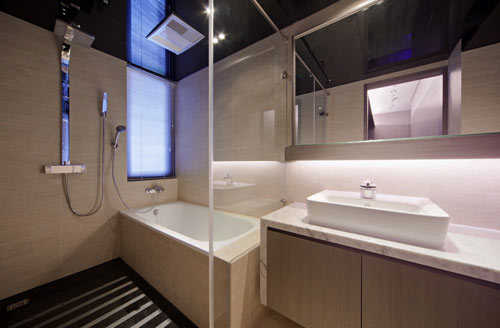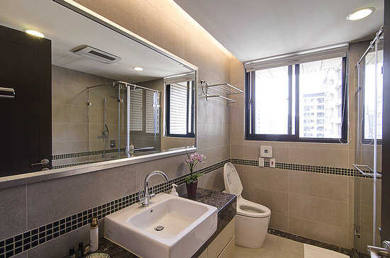 编辑点评:利用大镜面换取空间的通透感,腰带部位的马赛克拼贴,打造精品旅店般的居家体验。