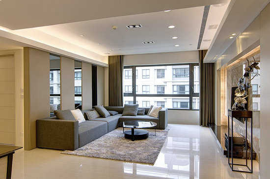 编辑点评:客变时沙发与电视主墙的对调,柜体安排、深入加大横宽呈现一气呵成的大器,其中立体性的光源安排与不对称手法,让视觉亦有着另类协调。