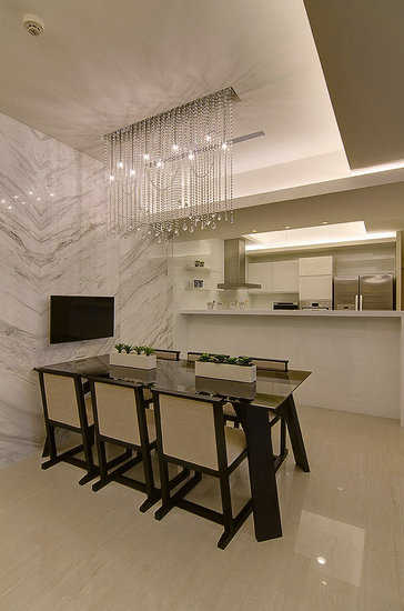 编辑点评:位移后的阳台动线,让原本二字型的厨房改以ㄇ字型呈现,且为了提高穿透度表现设计师刘晓芬也刻意减少上吊柜体数量,以干净强化透视感。