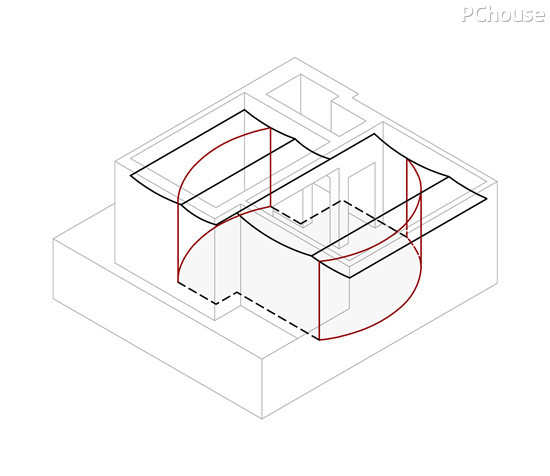 编辑点评:一顶屋架限定入口位置,象征“家型”。坡顶是我们每个人内心中对“家”这个意象最直接的空间转译。限定强化“进入”的概念,进入室内之前,先经过一个“室外”空间。