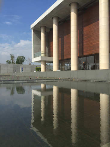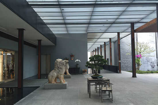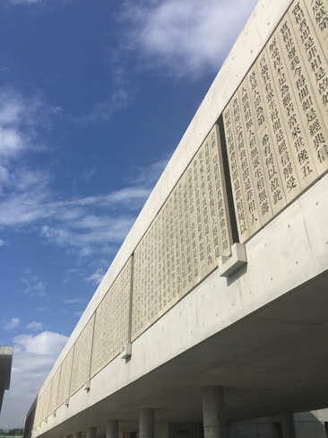 农禅寺旧舍与水月道场交相辉映,建筑设计师把宗教情感与佛教空灵的意境合一,通过对空间、自然景观、经文墙体的构筑等,让人与场域产生了时空对话,这是把文化、佛法融为一体的精神建筑。