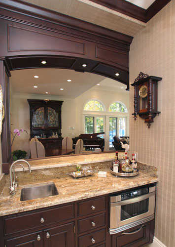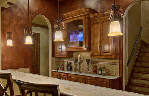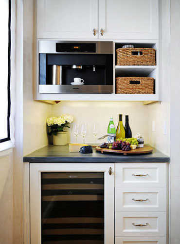 让你的酒吧配备齐全像水槽、迷你洗碗机、微波炉和冰箱等都节省了你走去厨房的步伐。