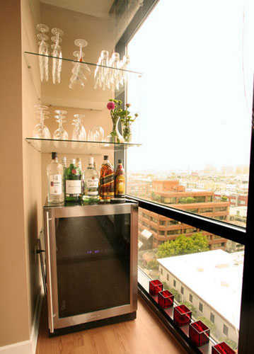 如果空间实在有限,可以拥有这样一个简单的冷饮中心,有着玻璃架和携带式冷却器。