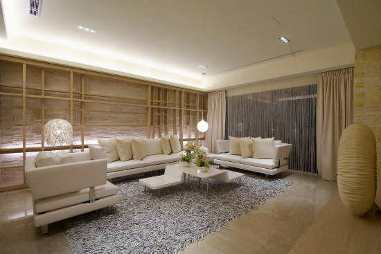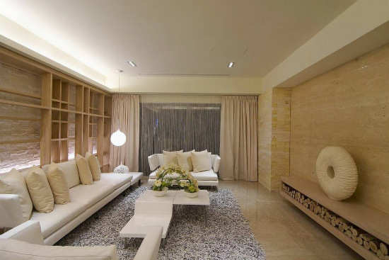 主要材料:米白洞石、金属烤漆、人造皮革、木皮、天然文化石等