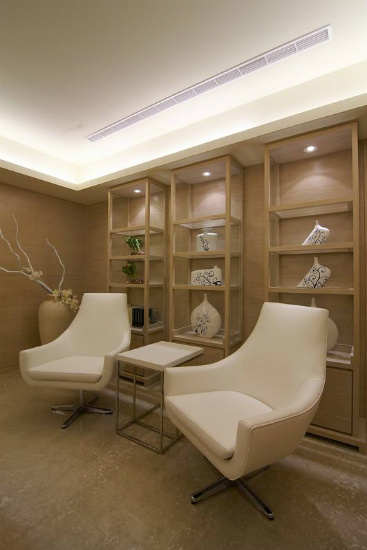 编辑点评:强调机能实用性,设置简单的桌椅及展示收纳柜,却又不失空间美感。