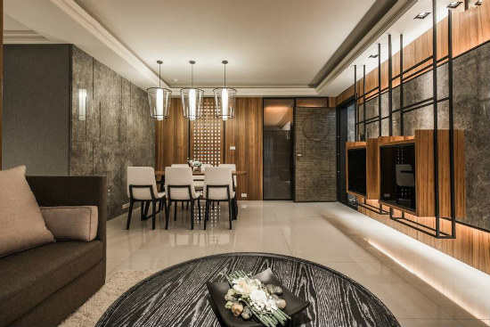 将空间回归自然本质,在本案中,彩韵室内设计运用大量木、石材质勾勒出气度非凡的居家场景,带有强烈视觉感的两种主题元素,经由吴金凤设计师精湛的异材质搭配手法,于空间中呈现令人惊叹的人文底蕴及冷冽质感,却不抢走呈现风采,并共同引导空间的自然人文律动。