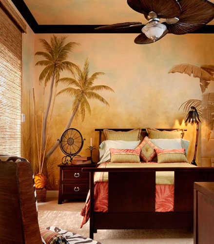 当热带风情撞上复古风情,是将热带的浓艳淡化,还是将复古的沧桑上色?得到的是两种的中和,墙壁上呈现的仿佛是记忆中的某个热带海边树林,配合上复古风格的卧室家具,便在这静享记忆中点点滴滴的美好。