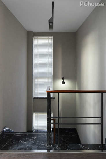 编辑点评:楼梯空间特意大量留白,微弱的灯光,却给人一种淡雅之感,大空间也有静谧角落。