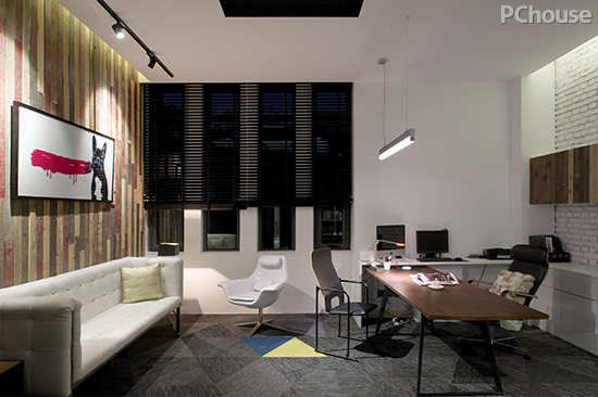 编辑点评:时尚的味道、艺术的足迹,浸染于每一个小空间里,而这个办公间也不例外。以白色为主色调,提供了一个干净而明亮的办公环境;相向的两面墙相互呼应,在共处中求差异,加上夸张的装饰画,点缀了整个空间。