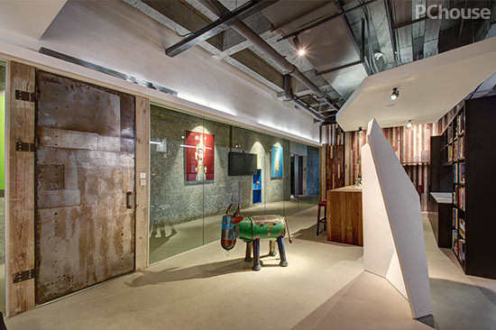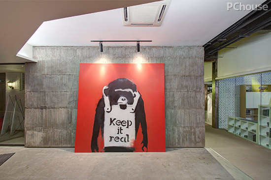 编辑点评:粗糙的混凝土墙面,搭配大型街头涂鸦画,让空间与艺术合为一体。夸张且具有个性的红色涂鸦画,仿佛在点燃着办公空间的工作热情,展现出细腻而粗犷的韵味,契合了整体空间追求个性创意的设计理念。