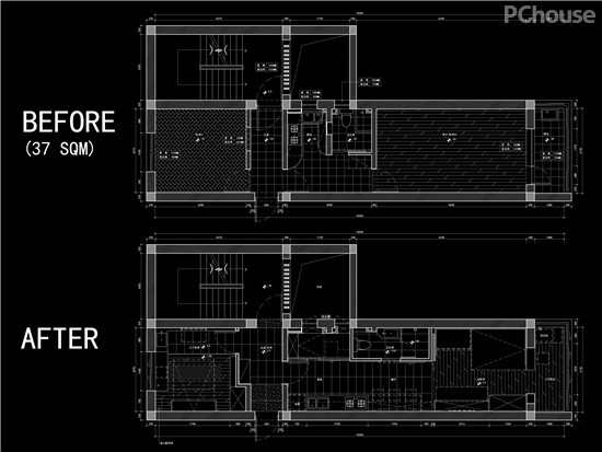 【太平洋家居网 设计频道】本案业主为五口之家,业主共有两个房间,中间隔有一条公共走道,一进大房间便是采光通风差且空间狭小厨房,卫生间小、因为人多而使用不便。设计师王平仲精确地控制了整体的比例关系,通过开放式厨房、良好的采光、收纳性极强的储物空间,尊重了每个人的居住空间,让这个被“一分为二”的家从空间上连接起来,更具凝聚力。