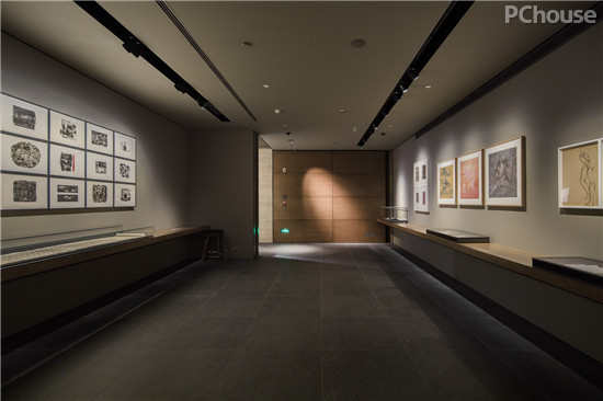 馆内各展室以五种微妙而深沉的暖灰色构成基调,陈列的画作与文稿,不采用传统式排列悬挂的方式,七成作品,置于精致的金属或木制展柜。考虑到展室整体调暗、局部照明的布光效果,摄影师借由空间设计者传达的孤绝、超然的美学,将木心遗世独立的风神,做了完美的诠释。