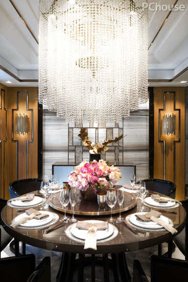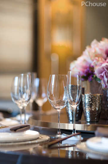 编辑点评:因而饭厅在几种颜色和材质的合并调和中,表达出生活的一份优雅,反而有古典的东方情怀。这种情怀也许只用几个简约的高脚杯就足以表带出来。