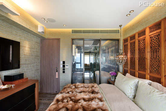 编辑点评:卧室背景墙是来自中国20~30年代的中式窗牖古董,经设计师巧妙应用变身成装饰屏风,卧床两侧的水晶吊灯则是有150年历史的欧洲古董,卧室装饰网罗了中西历史上极具代表性的经典收藏臻品,为居住者带来无与伦比的审美享受和收藏乐趣。
