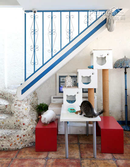 猫咪们是海妖的重要成员,店主在鹅卵石铺砌的台阶下为它们安置了温馨的家。