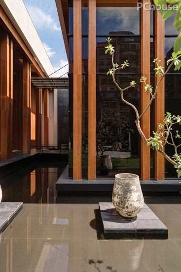 【太平洋家居网 设计频道】本案中,设计师用实木与天然石构建了一个简约的建筑主体,同时利用不同的装饰元素和自然修饰打造了一个典雅的空间。自然与建筑间的和谐,营造了纯正祥和的气氛。仿佛在踏入回廊之际便已远离了喧嚣的尘世,在这高楼群落一隅的水榭亭阁,心随境转,感受着静谧的美好。