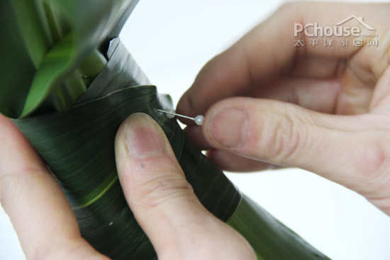 第三步:将巴西叶末端往后翻,用订书机直接钉住固定。