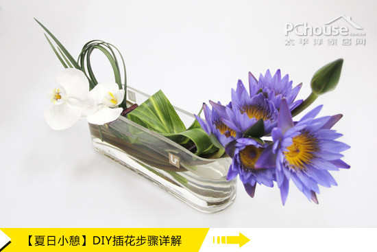 第六步:最后在睡莲枝干之间插入小天使或春兰叶,调整好位置和高度,就大功告成啦!