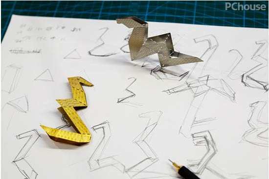 几何块面的折叠需要一定的精度才能保证吻合,而考虑到实际使用中用户们动手能力各有不同,最后连接处的头部可能会出现散开、松动的问题,PHAIdesign巧妙的引入了一对圆形的磁铁,即起到了美观的作用,同时更能方便的固定整个动物的结构。