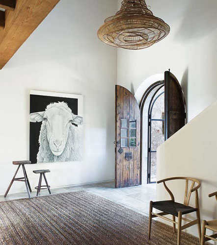 倘若门厅是一个开放的空间,没有明确的空间划分,垂直墙面摆放桌子是一个不错的主意。既可以界定玄关区域,桌子还可以灵活运用增强实用性。
