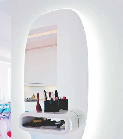 小编的话:每天出门前女人们花在梳妆上的时间绝对不少,在门厅设置一个带背光的梳妆台,多贴心的设计,还能收纳一些杂乱的小物。