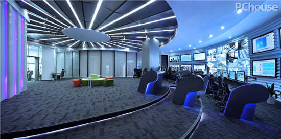本项目作为大数据、大流量的虚拟数据中心办公基地,空间氛围自然地与其精神契合。通过造型、灯光等处理手法,从设计上来营造科技感和虚幻的空间感受——尤其在灯光方面,各种色彩的灯光在计算机的控制下配合转换。