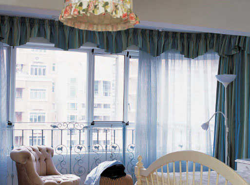 白色的木床围栏、海蓝色窗帘,优雅中带着度假的轻松心情。