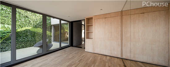编辑点评:利落的收纳功能与可闭合的暗藏式床体,结合多重移门,加大了空间功能的多样性。