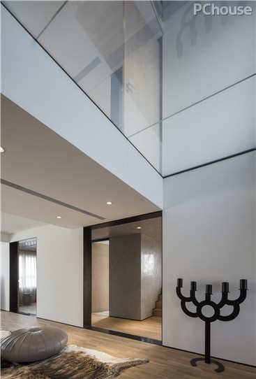 编辑点评:玄关处以白墙面打底,借助来自荷兰设计的落地烛台衬托,强调入户的第一视觉感官。