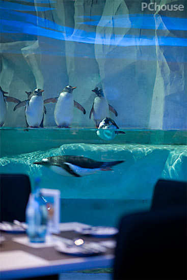 编辑点评:除此之外,设计师匠心独运,想要营造一种去企鹅家里做客的氛围:企鹅是主人,客人是在它家里用餐,这样能让游客更能产生身临其境的代入感。