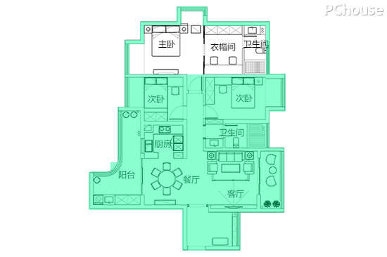 3.主卧面积较大,但主卫占用了一半的空间,难以兼顾“休息、工作、娱乐”的空间需求;