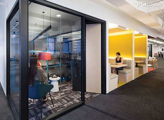 编辑点评:独立区间保证教育的独立性,开放间也有一定的隐私,明黄墙面与灯光活跃了教育氛围。