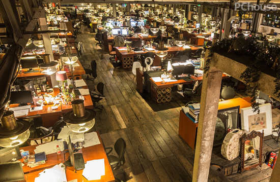 编辑点评:办公大厅看似凌乱不堪,实则处处隐藏着文艺气息。从古铜的吊灯到原始的木地板,紧张排序的座到中规中矩的空间流向,每一步都是设计师的心血制作。