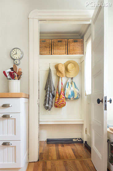 编辑点评:从以前的布局看,侧门与厨房相隔不超过微波炉和面包烤机的距离,烤箱放置在两个侧窗之间。可见冰箱与深木色置物柜上方空间、以及左边潜在的储存区域都未被开发。