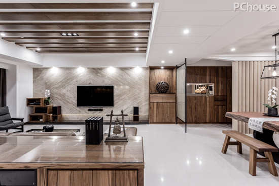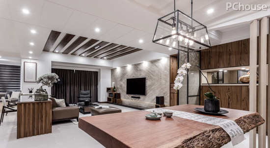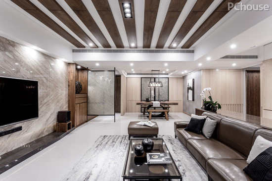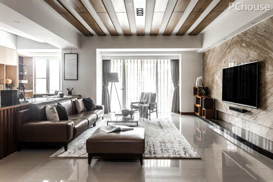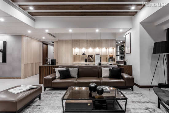 推荐理由:L型沙发可放大客厅视觉容量的同时,也是日常生活舒适选择之一。深色系,则可提升空间大而奢的气度。