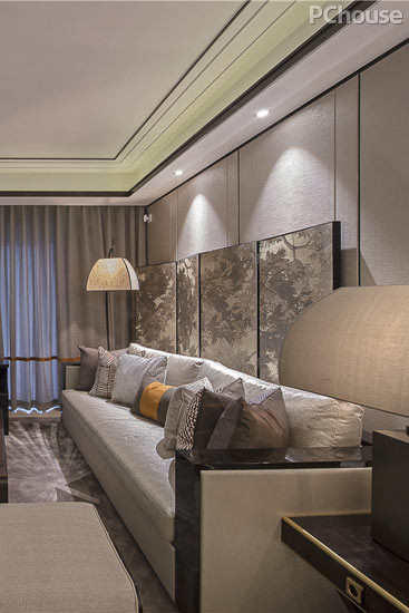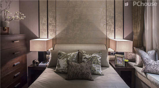 编辑点评:在卧室中,设计师想要表达的是都市新贵对于现代时尚与质雅生活的思考,浮华过后终归寻求自我的沉静。因此,设计师并没有运用浮夸的线条架构与极度奢华的设计材质,而是着力于打造卧室空间安宁与舒适的居室体验。