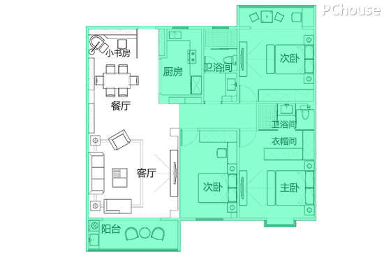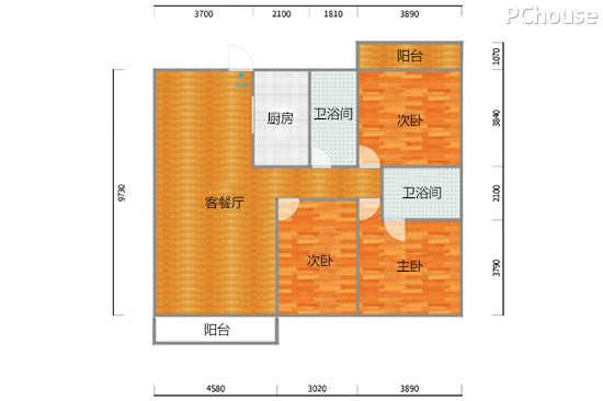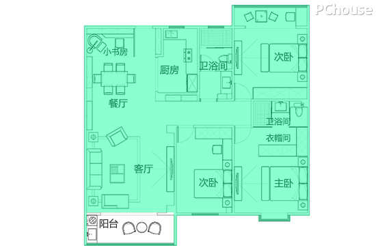 4.两个阳台大小相差不大,但没有功能上的区分,导致空间浪费。