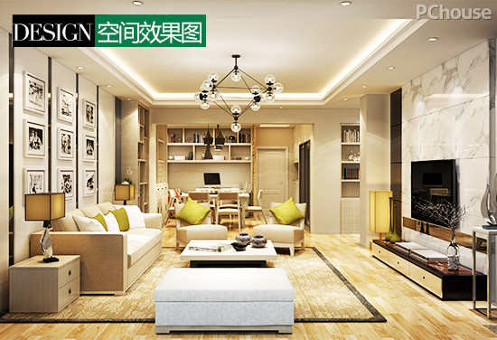 | 2、简单吊顶,在客餐厅空间设计全开放式小书房,设置独立办公区。 | |||||