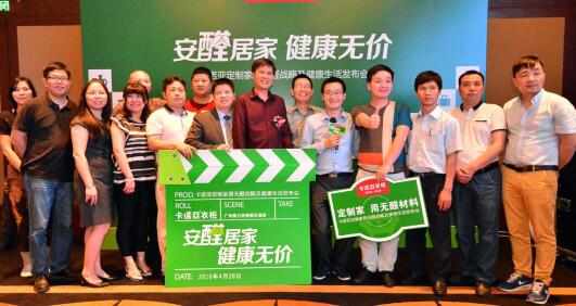 4月28日下午,卡诺亚定制家居“安醛居家·健康无价” 无醛战略及健康生活发布会在广州富力空港假日酒店隆重举行!卡诺亚定制家居董事长程国标先生及公司部分管理人员、卡诺亚经销商代表、卡诺亚供应商代表、十多家新闻媒体等近百人出席,并共同见证了卡诺亚具有历史意义的重要时刻。