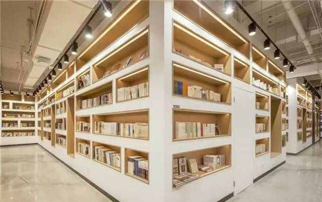 ▲ 大门入口处,是占据了书店四分之一面积的“森林阅读区”,从一根根由书架柱构成的白色“森林”间穿过,柱子上星星点点的灯光会全部亮起,有一种步入梦幻之林的感觉,还可以坐在“森林”间的沙发上休息、看书。