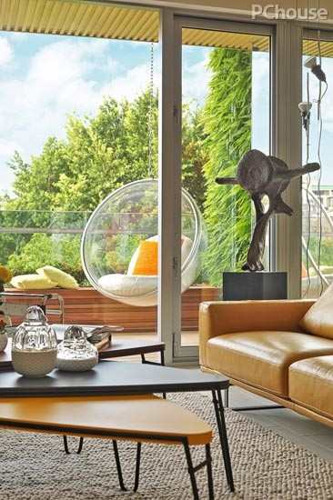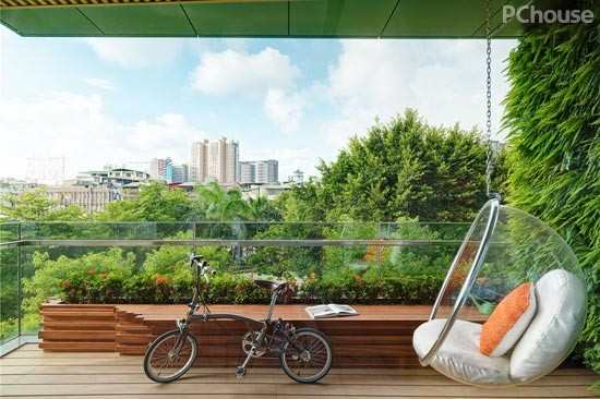 编辑点评:简约的原木沙发、通透的玻璃摇椅在绿意盎然中被放大,自然而真实。一本书、一杯茶、一首歌,便能在此度过一个悠然而自在的下午。