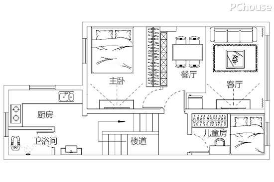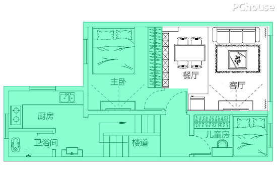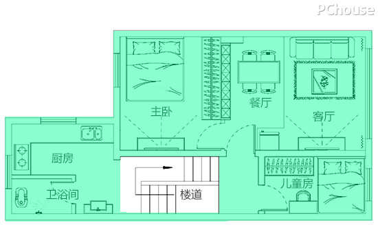 | 3、合理布局空间,把厨卫分隔成两个独立空间,满足一家三口需求。 | |||||