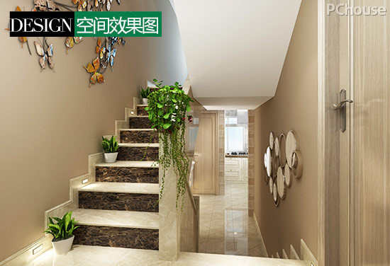 4.楼道设计简单,但在墙面和地板装饰上花心思,提高整个空间的亮度与质感。