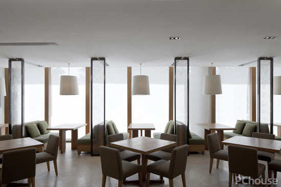 编辑点评:从经济成本和设计意图两方面考虑,绝大部分使用最简单的白色涂料,选择当地基本的铺装材料,追求空间简约的同时,又可凸现设计感,木色的餐厅搭配米色的座椅,使得整个空间有一种温润、柔和的观感。
