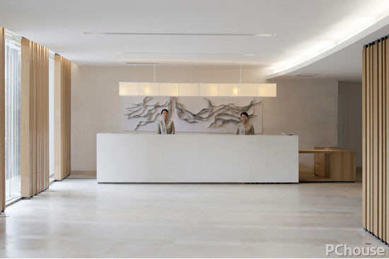 编辑点评:在盈白简洁的场域里,设计师藉由木纹与光影,构筑大堂共享空间的主体线条。并且充分调动阳光与空间内部的颜色互动,使得空间内随着时间的推移变幻出不同的表情。