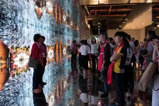 新展厅共有三楼,一楼展厅呈现了金意陶的企业文化与企业的发展历程,每一面匠心独运的墙壁都写满了金意陶13年间的风雨进程。二楼展厅配合品牌新技术的推广出发,营造了具有科技感的空间氛围。空间设计重点突出了KITO创新的空间设计理念,以23米长廊桥电子感应显示屏和金意陶电子体验中心为载体,通过多维度,具有故事性的装饰,配合跃动的灯光效果,增强展厅气氛,通过全方位的视听和交互方式让参观者更加增强体验感,构筑一个以未来主义为先导的时尚空间。三楼展厅则透过意大利式设计的开放呈现,整体空间兼具理性与感性交融,让新产品大放异彩的同时,通过混搭,让经典产品焕发新的光彩。