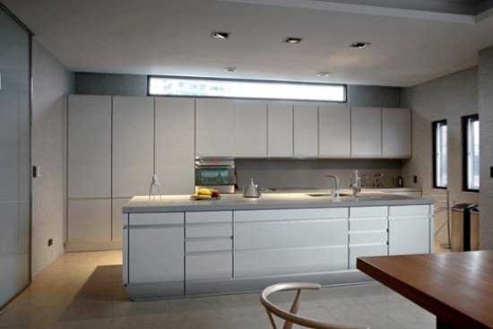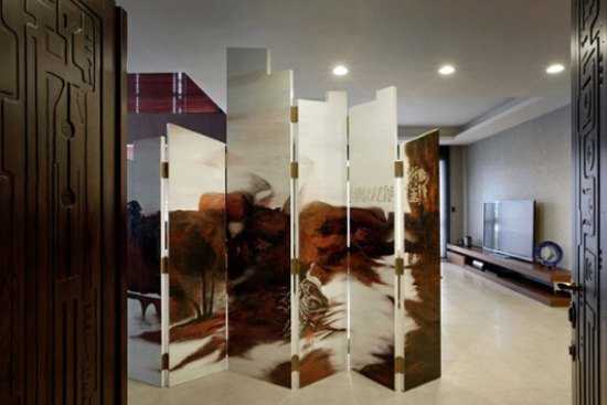 这套住宅原地为旧式三合院,拆除后重新兴建成独栋透天别墅,从外至内的空间设计,无不强化整体格局的通透开敞,在「空」的简约基调上,还原既有空间尺度,然后在大开大阖之间,串连以人性、人文为诉求的情感层次,让人跃升为空间主角,不易被空间所牵制驾驭。其中,最能彰显这般细腻和谐的空间布局,当属三至四楼的二哥住家,特别一进大门,会发现室内格局开朗宽敞,大理石地砖全室舖设,延展出水平视觉张力, 为了保持视野的通透无碍,室内多以活动式隔间划分区域。