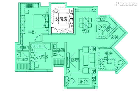 1.本案例为实用户型,厨房、书房为异形空间,不存在采光通风不足的问题;