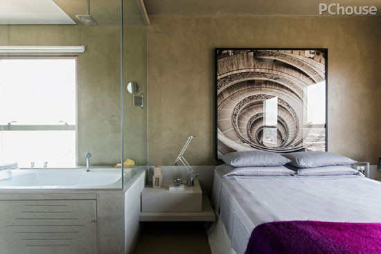 编辑点评:设计师在私人的休憩区域中植入了更多的舒适性设计元素。卧室、浴室、浴盆的空间虽紧凑链接在一起但又被合理地划分,保证空间完整机能性的同时不失大方与时尚。